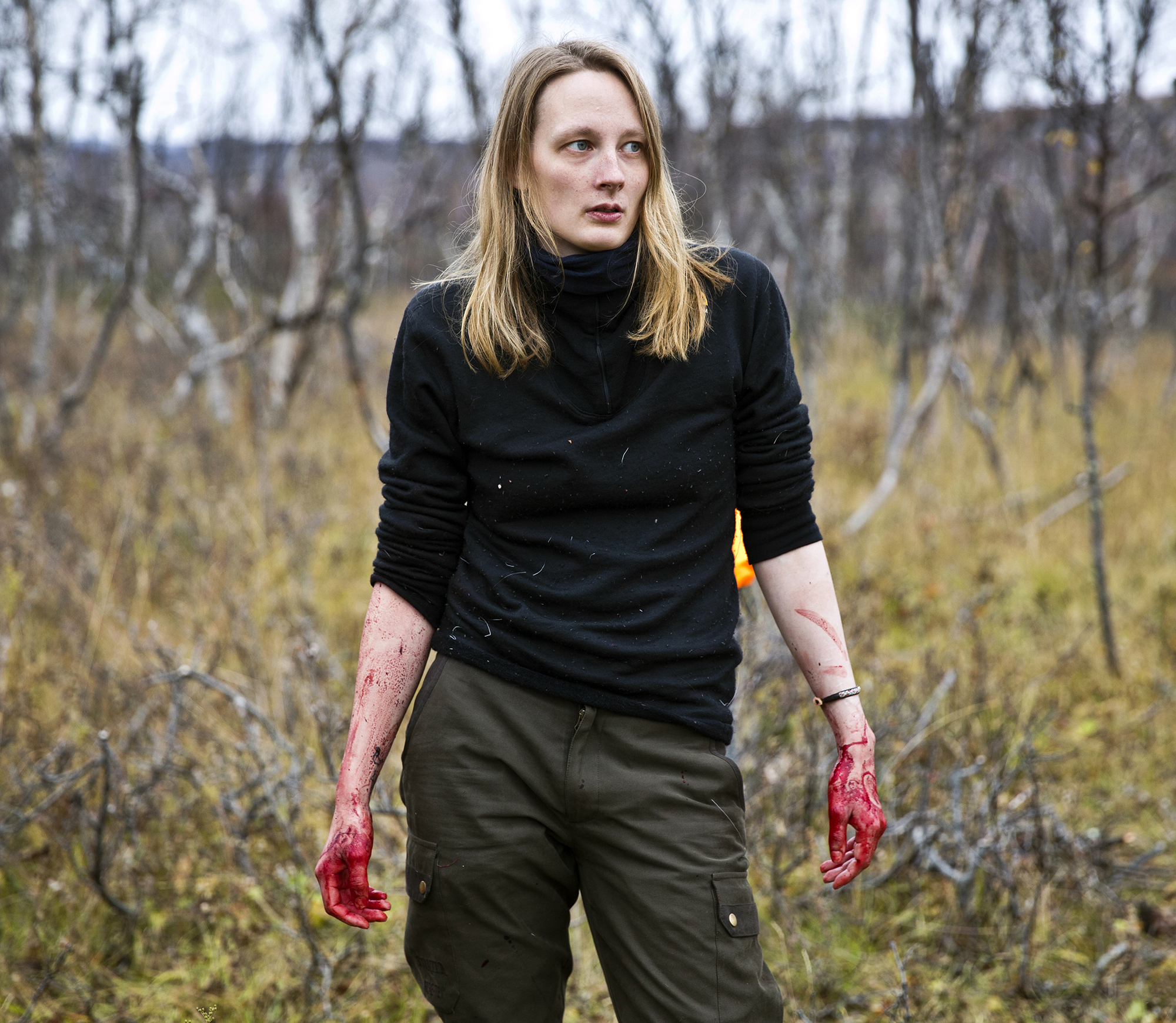 "For nokre år sidan såg eg eit fotografi av ei venninne på Facebook. Ho stod breibeint over ein svær reinsbukk ho nett hadde skote. Vêret såg surt ut, vinden rota til håret hennar og litt blod var sølt utover jakka hennar. Ho hadde eit fast grep rundt geviret til bukken og eit breitt smil i ansiktet. Ho var høggravid. Dette fotografiet utfordra mi førestilling om kvinner og identitet. Derfor byrja eg å undersøka kva det vil seie å vera ein kvinneleg jeger."