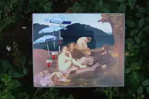 Solfrid Aksnes - små fotomontasjar planta i blomsterbedd, ”Frukost i det grøne”