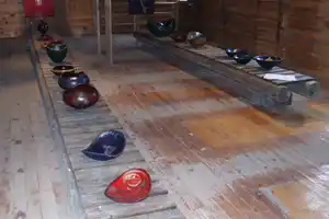 Anne Hesvik Kartveit - utstilling inne i ein lagerbygg på festivalplassen. Dekor på tre.