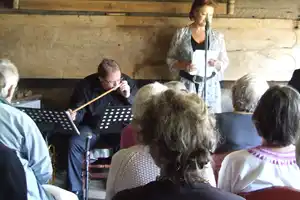 Skodespelar Arnhild Litleré hadde sett saman og las dikt og stykke frå dagboka til Olav H. Hauge. Arild B. Nielsen hadde komponert tonefylgje og framførte det saman med Sigmund Vik, for ein fullsett sal.