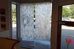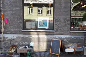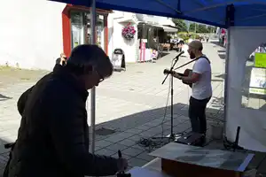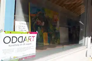 Kunstnarar stilte ut i butikkvindauge og i tomme lokale i sentrum av Odda og det vart musikk i teltet i Gågata og guida kunstrunder.
