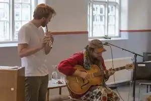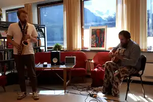 v/Langesæter, saksofon og ein ven på gitar.