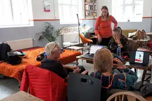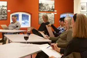 Den kurdiske kunstnaren Kwestan Jamal Bawan inviterte til: Del historia bak ditt bilde. Ho oppfordra innvandrarar og andre om å ta med seg eit foto og fortelje dei andre kring bordet si historie.