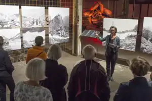 Torild Gjesvik som er kunsthistorikar, høgskolelektor, og kunstformidlar, og Knudsen-kjennar tok publikum med seg på interessante kunstrundar i begge utstillingane.